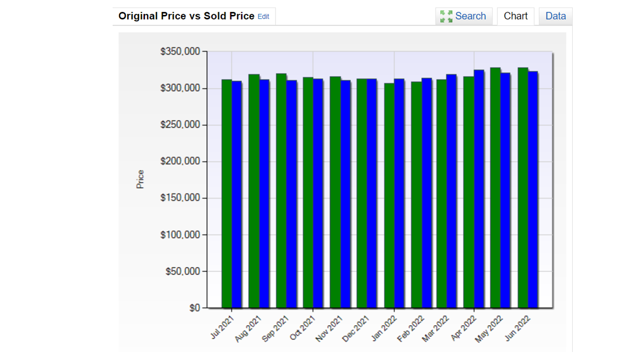 The graph below includes sales data for the previous 12 months. This information was gathered directly from the North Texas Real Estate Information Service, a technology solutions provider serving the real estate community in North Texas. The numbers display average list price versus average sold price for Single Family Residences that were originally priced between 250k and 400k in Dallas County. On average, homes that sold in June 2022 sold for 1.5% to 2% below original list price. According to the graph (green bar represents original list price | blue bar represents sold price) , similar ratios existed in various months preceding December 2021. Although we are seeing price reductions, this data indicates the increase in interest rates that began in the Spring have not adversely impacted values to the point where the real estate market is plummeting.